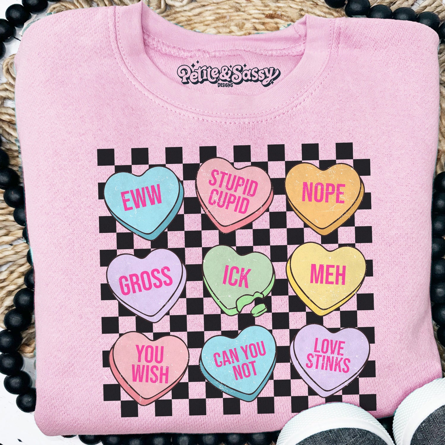 Your kiddo will rock this hilarious Eww Funny Candy Hearts sweatshirt with its cheeky, tongue-in-cheek candy heart messages that'll make everyone smile. Soft and snuggly, it's the perfect pick for Valentine's Day shenanigans, festive gatherings, or lazy lounging at home. Watch them strut around in this playful pullover that turns classic candy hearts into something delightfully sassy and fun.