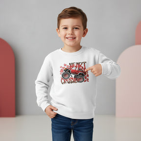 Be the best-dressed kid on the block with this adorable heart crusher monster truck sweatshirt. Decked out in this cute graphic design, this sweatshirt will make your little one stand out. Made from soft and cozy fabric, this sweatshirt will keep your child warm while looking fashionable.